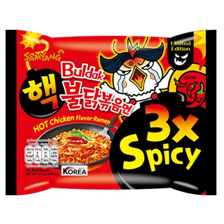Hot Chicken Flavor Ramen or buldak-bokkeum-myeon literally fire chicken stir-fried noodles is a brand of ramyeon produced by Samyang Food in South Korea since April 2012. The 2x Spicy version. As a basis for comparison Samyangs 2x Spicy Fire Ramen is a mere 8706 SHU while the reigning hottest ramen the Teumsae Ramyeon only comes in at 9413 SHU.